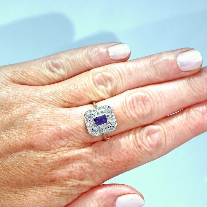 Art Deco Sapphire Diamond Target Ring Butter Lane Antiques